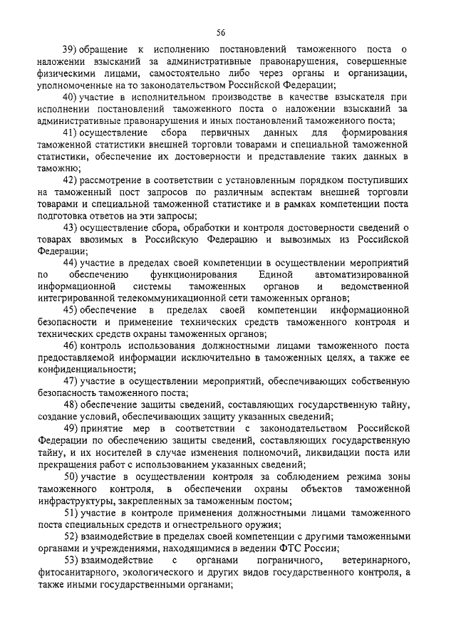 "ОБ УТВЕРЖДЕНИИ ПОЛОЖЕНИЙ О ТАМОЖЕННОМ ПОСТЕ"