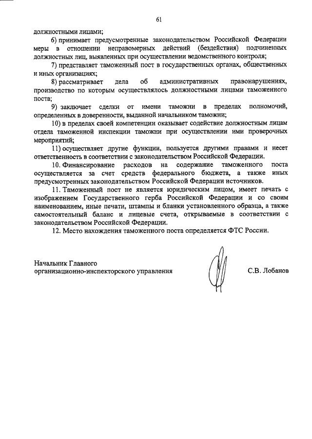"ОБ УТВЕРЖДЕНИИ ПОЛОЖЕНИЙ О ТАМОЖЕННОМ ПОСТЕ"