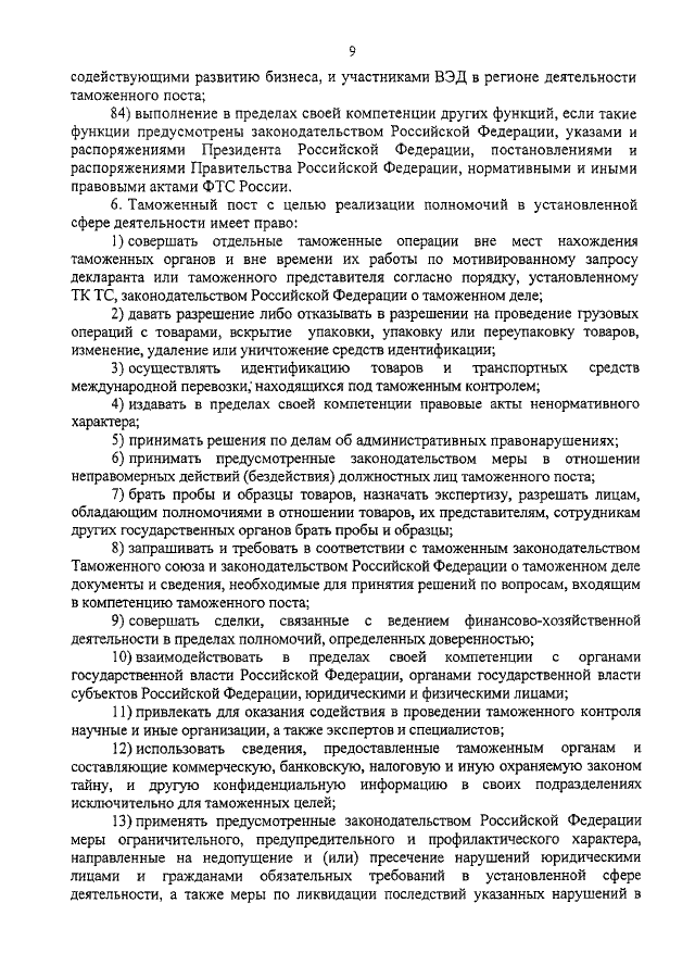 "ОБ УТВЕРЖДЕНИИ ПОЛОЖЕНИЙ О ТАМОЖЕННОМ ПОСТЕ"