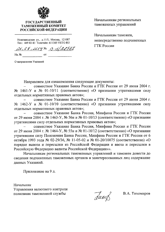 ПИСЬМО ГТК РФ от 20.07.2004 N 13-15/26568