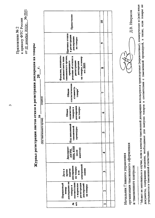 ПРИКАЗ ФТС РФ от 22.12.2010 N 2531