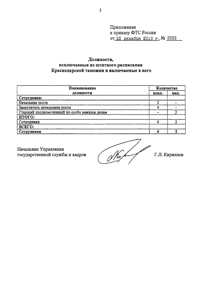 ПРИКАЗ ФТС РФ от 22.12.2010 N 2533
