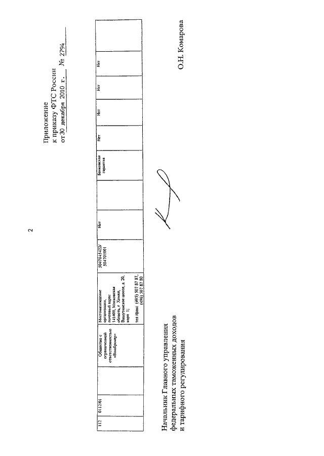 ПРИКАЗ ФТС РФ от 30.12.2010 N 2794