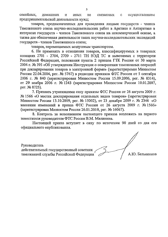 ПРИКАЗ ФТС РФ от 03.12.2010 N 2330