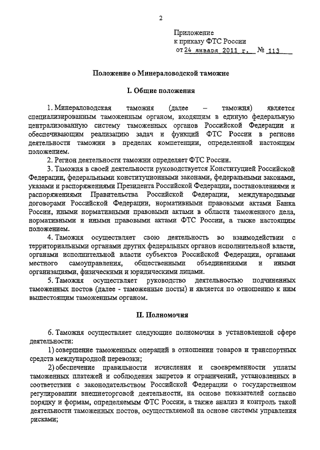 ПРИКАЗ ФТС РФ от 24.01.2011 N 113