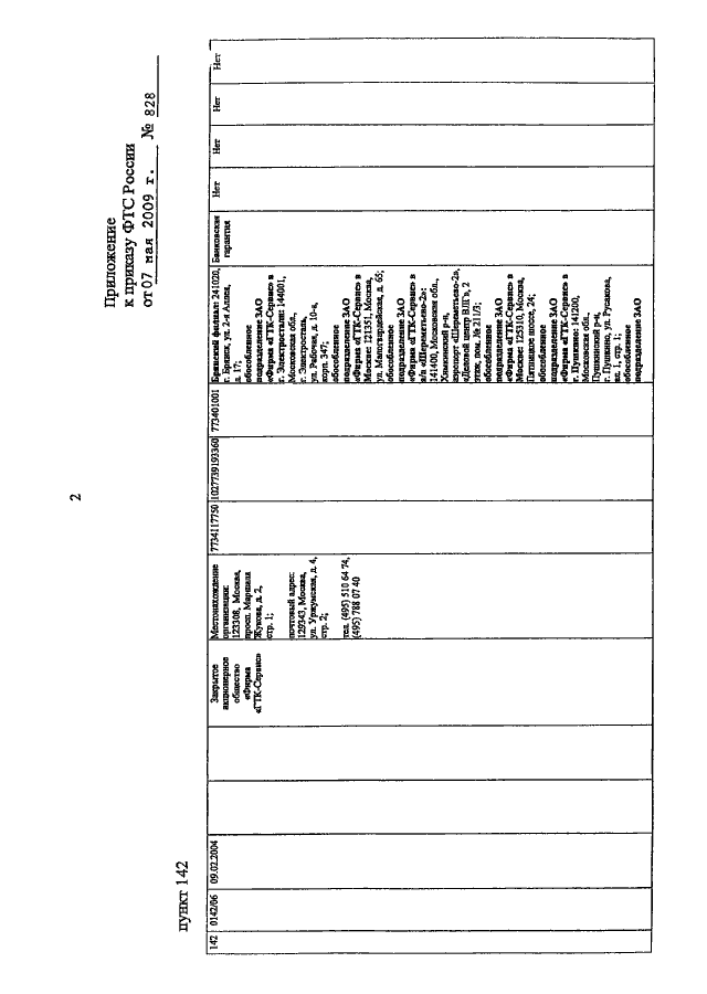 ПРИКАЗ ФТС РФ от 07.05.2009 N 828