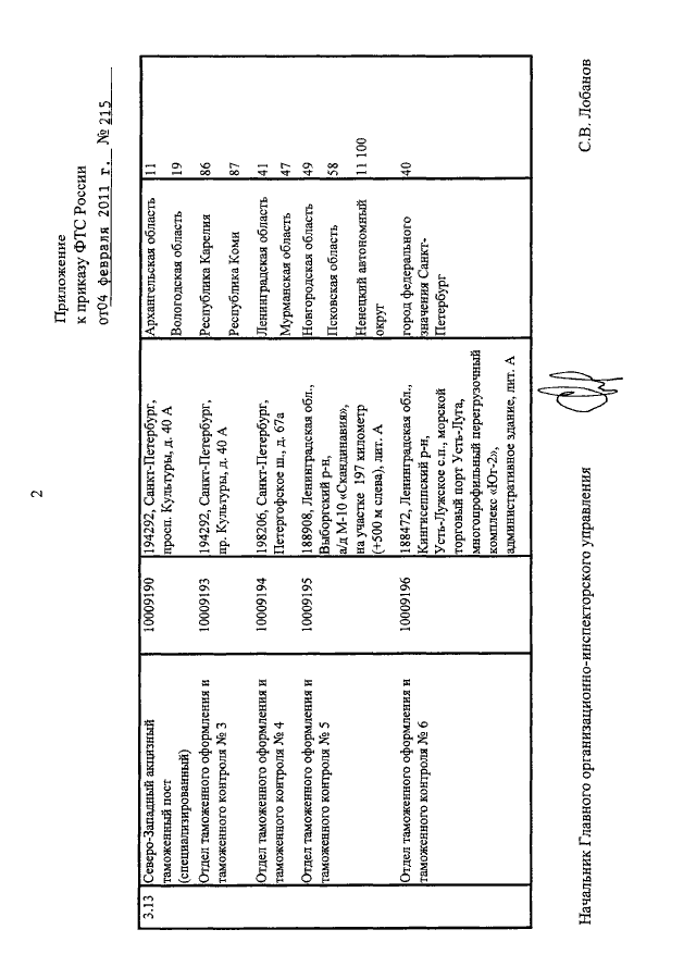 ПРИКАЗ ФТС РФ от 04.02.2011 N 215