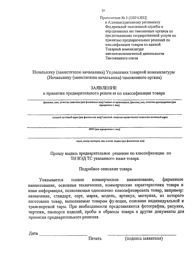 "ОБ УТВЕРЖДЕНИИ АДМИНИСТРАТИВНОГО РЕГЛАМЕНТА ФЕДЕРАЛЬНОЙ ТАМОЖЕННОЙ СЛУЖБЫ И ОПРЕДЕЛЯЕМЫХ ЕЮ ТАМОЖЕННЫХ ОРГАНОВ ПО ПРЕДОСТАВЛЕНИЮ ГОСУДАРСТВЕННОЙ УСЛУГИ ПО ПРИНЯТИЮ ПРЕДВАРИТЕЛЬНЫХ РЕШЕНИЙ ПО КЛАССИФИКАЦИИ ТОВАРОВ ПО ЕДИНОЙ ТОВАРНОЙ НОМЕНКЛАТУРЕ ВНЕШНЕЭКОНОМИЧЕСКОЙ ДЕЯТЕЛЬНОСТИ ТАМОЖЕННОГО СОЮЗА"
