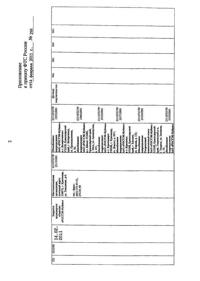 ПРИКАЗ ФТС РФ от 14.02.2011 N 298