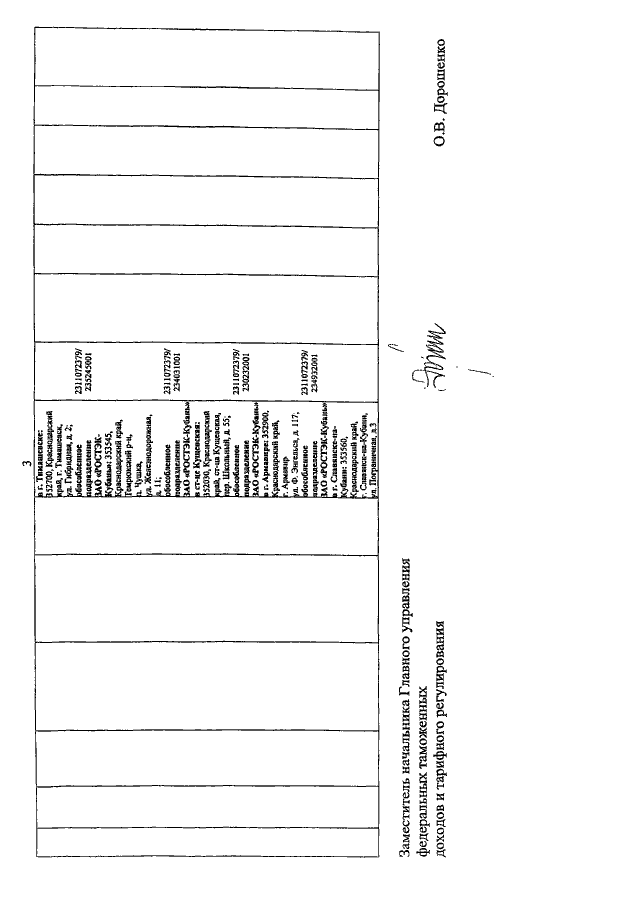 "О ВКЛЮЧЕНИИ В РЕЕСТР ТАМОЖЕННЫХ ПРЕДСТАВИТЕЛЕЙ ЗАКРЫТОГО АКЦИОНЕРНОГО ОБЩЕСТВА "РОСТЭК-КУБАНЬ"