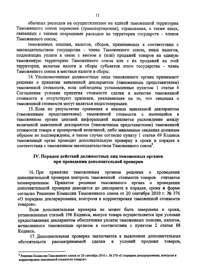 "ОБ УТВЕРЖДЕНИИ ИНСТРУКЦИИ ПО ПРОВЕДЕНИЮ ПРОВЕРКИ ПРАВИЛЬНОСТИ ДЕКЛАРИРОВАНИЯ ТАМОЖЕННОЙ СТОИМОСТИ ТОВАРОВ, ВВОЗИМЫХ (ВВЕЗЕННЫХ) НА ТАМОЖЕННУЮ ТЕРРИТОРИЮ ТАМОЖЕННОГО СОЮЗА, И РЕГЛАМЕНТА ДЕЙСТВИЙ ДОЛЖНОСТНЫХ ЛИЦ ТАМОЖЕННЫХ ОРГАНОВ ПРИ КОНТРОЛЕ И КОРРЕКТИРОВКЕ ТАМОЖЕННОЙ СТОИМОСТИ ТОВАРОВ"