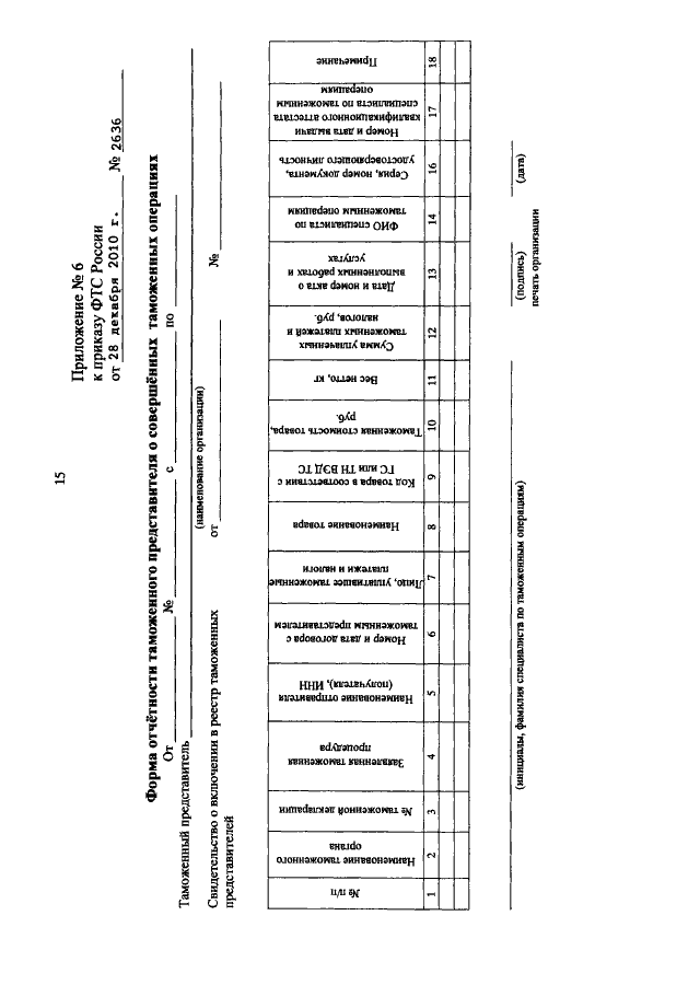 ПРИКАЗ ФТС РФ от 28.12.2010 N 2636