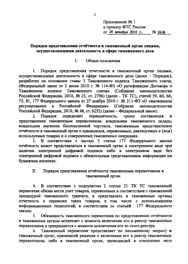 ПРИКАЗ ФТС РФ от 28.12.2010 N 2636