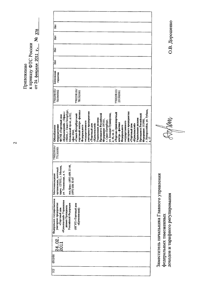 ПРИКАЗ ФТС РФ от 24.02.2011 N 378