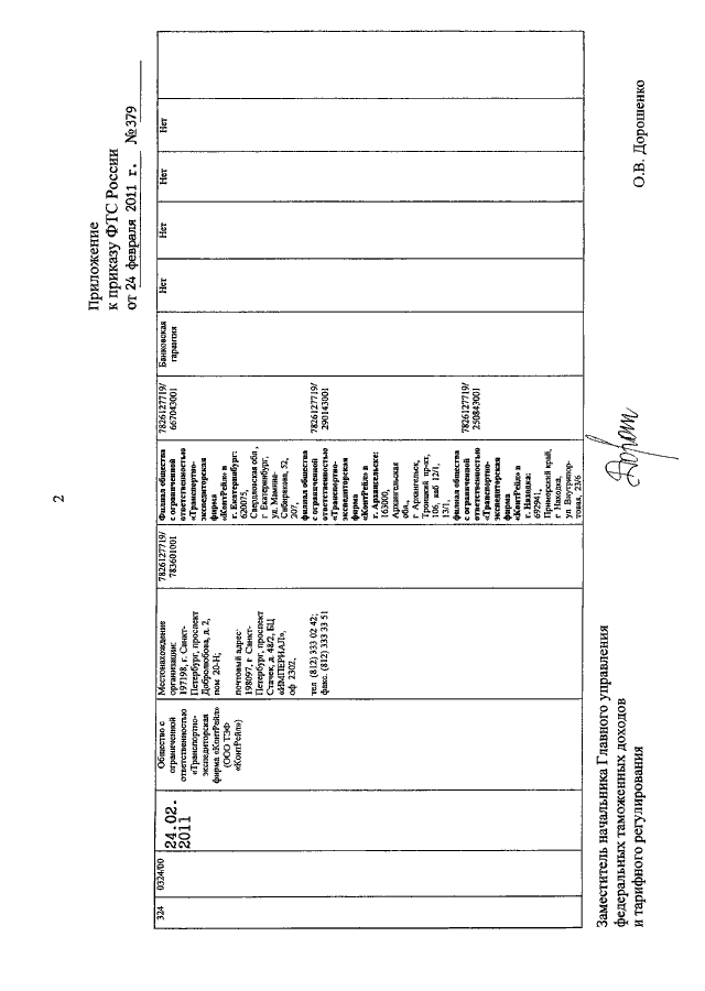 ПРИКАЗ ФТС РФ от 24.02.2011 N 379