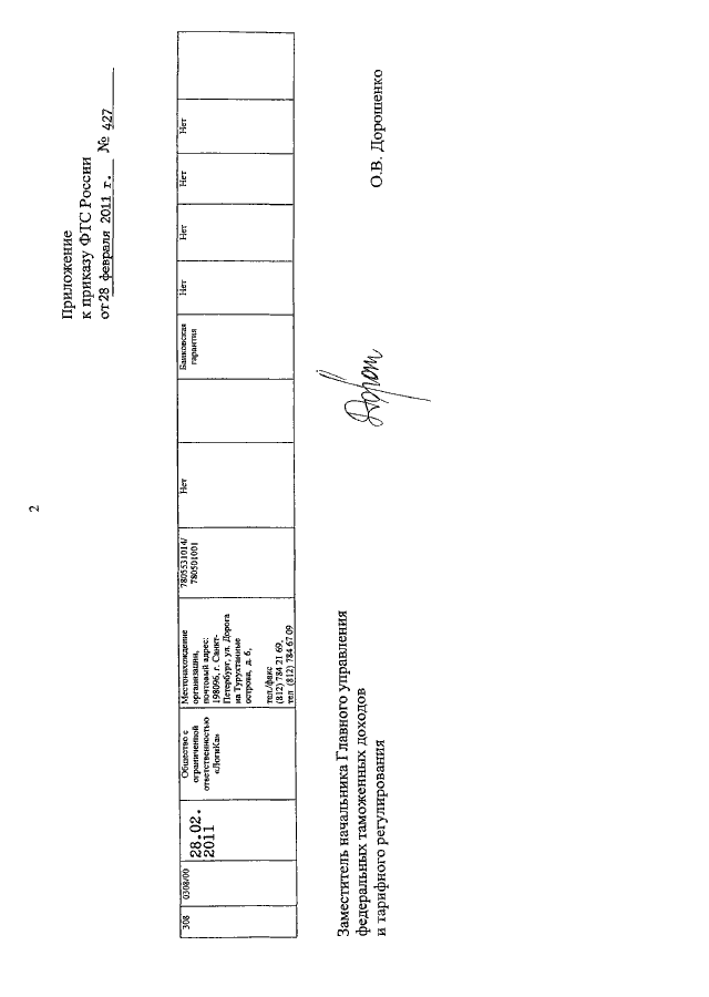 ПРИКАЗ ФТС РФ от 28.02.2011 N 427