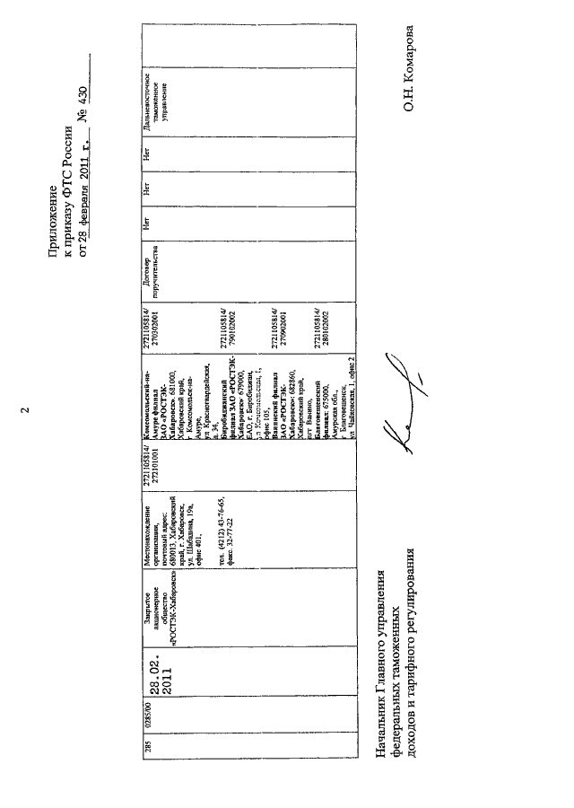 ПРИКАЗ ФТС РФ от 28.02.2011 N 430