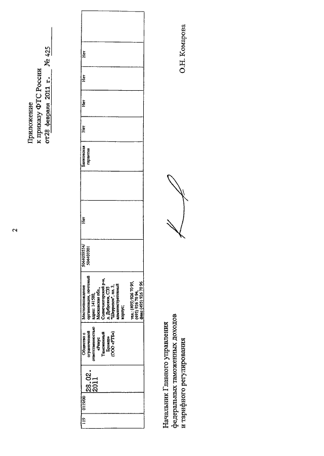 ПРИКАЗ ФТС РФ от 28.02.2011 N 425