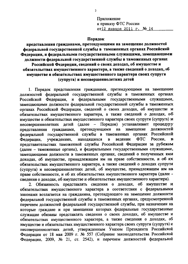 ПРИКАЗ ФТС РФ от 12.01.2011 N 14