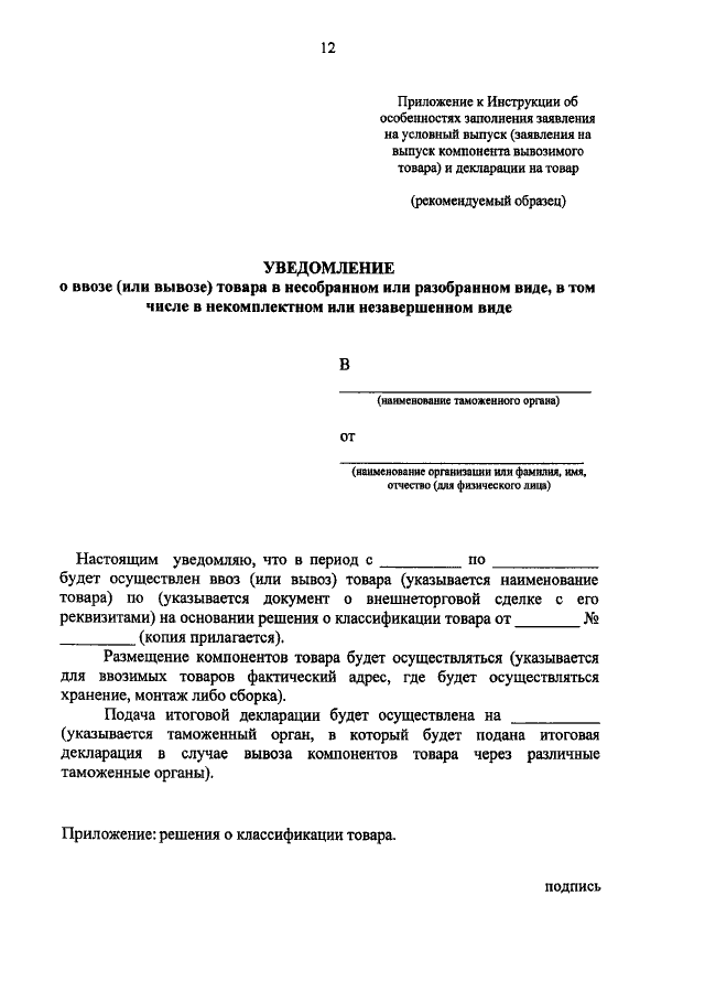 "ОБ УТВЕРЖДЕНИИ ИНСТРУКЦИИ ОБ ОСОБЕННОСТЯХ ЗАПОЛНЕНИЯ ЗАЯВЛЕНИЯ НА УСЛОВНЫЙ ВЫПУСК (ЗАЯВЛЕНИЯ НА ВЫПУСК КОМПОНЕНТА ВЫВОЗИМОГО ТОВАРА) И ДЕКЛАРАЦИИ НА ТОВАР"