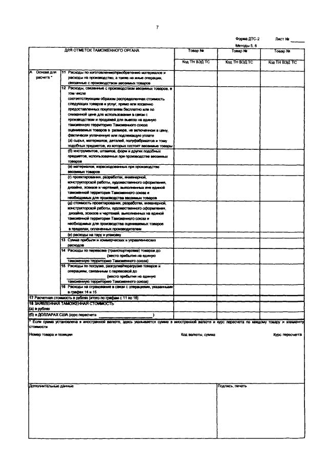 "ОБ УТВЕРЖДЕНИИ ФОРМЫ ДЕКЛАРАЦИИ ТАМОЖЕННОЙ СТОИМОСТИ (ДТС-2) И ПРАВИЛ ЗАПОЛНЕНИЯ ДЕКЛАРАЦИИ ТАМОЖЕННОЙ СТОИМОСТИ ФОРМЫ ДТС-2"