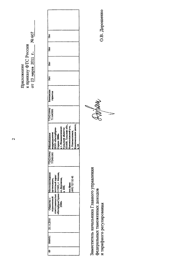 ПРИКАЗ ФТС РФ от 23.03.2011 N 607