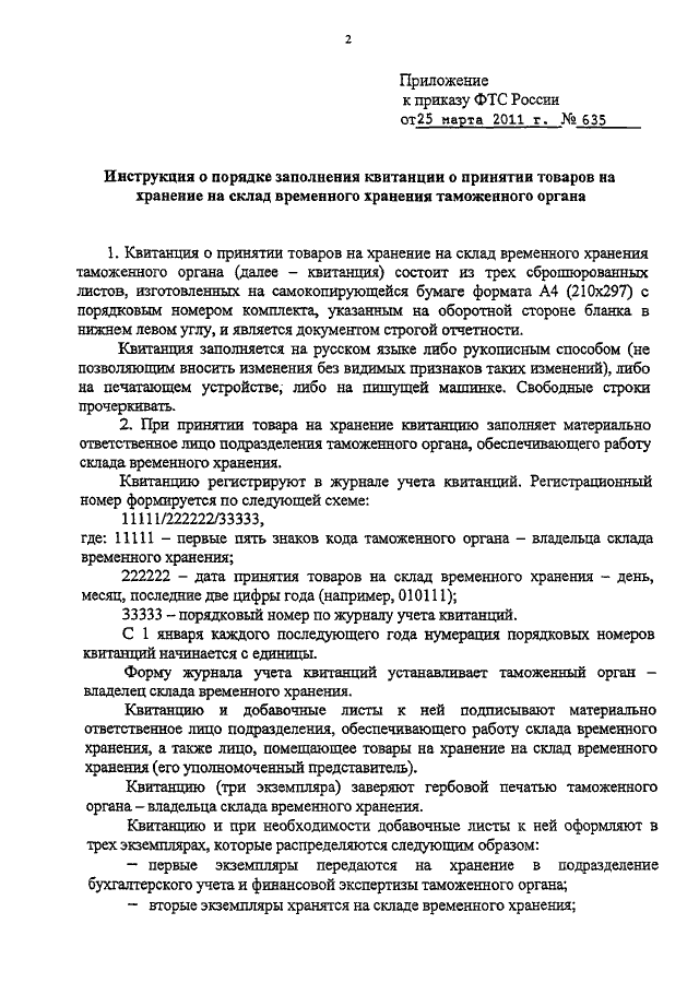 ПРИКАЗ ФТС РФ от 25.03.2011 N 635