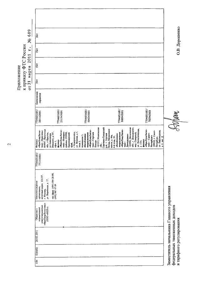 ПРИКАЗ ФТС РФ от 31.03.2011 N 689