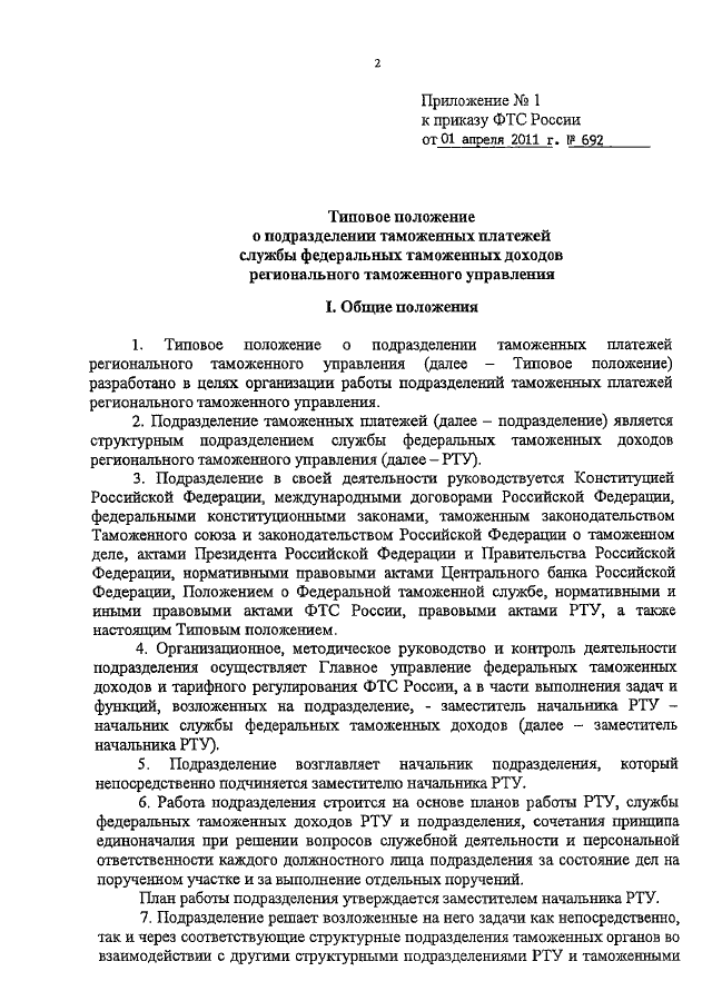 ПРИКАЗ ФТС РФ от 01.04.2011 N 692
