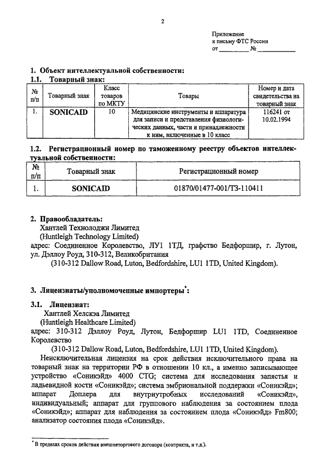"О ТОВАРНОМ ЗНАКЕ "SONICAID"