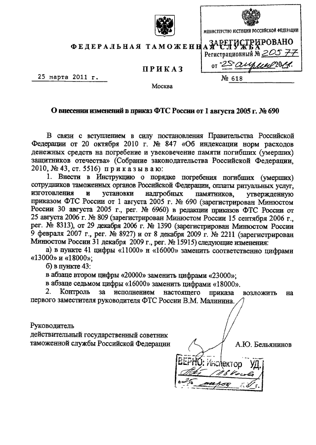 ПРИКАЗ ФТС РФ от 25.03.2011 N 618