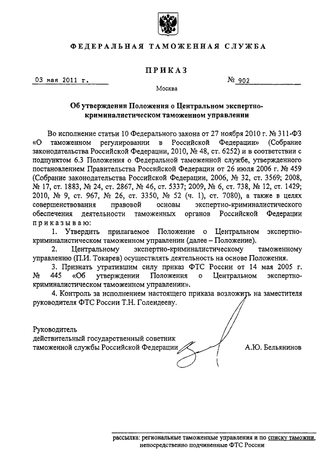 ПРИКАЗ ФТС РФ от 03.05.2011 N 902