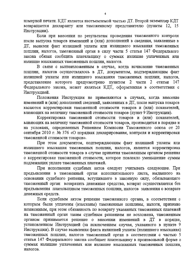 "О ВОЗВРАТЕ ТАМОЖЕННЫХ ПЛАТЕЖЕЙ"