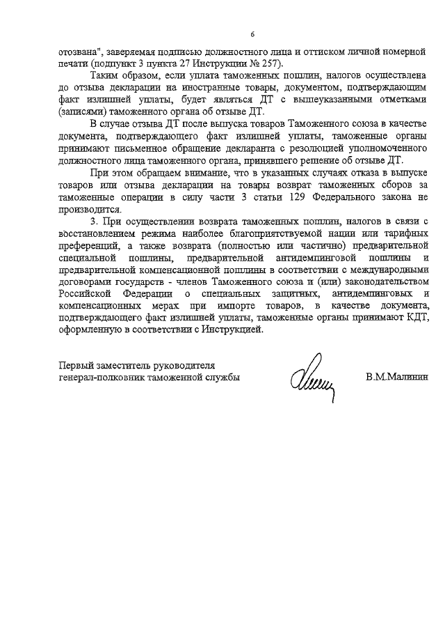 "О ВОЗВРАТЕ ТАМОЖЕННЫХ ПЛАТЕЖЕЙ"