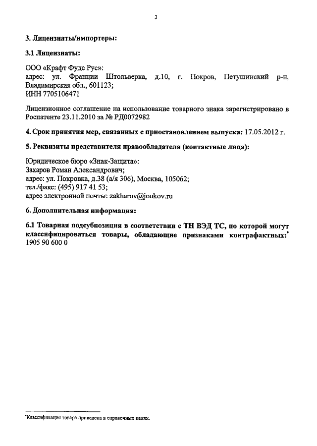 "О ТОВАРНОМ ЗНАКЕ КОМПАНИИ "KRAFT FOODS GLOBAL BRANDS LLC"