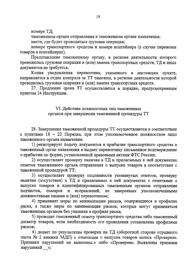 "ОБ УТВЕРЖДЕНИИ ИНСТРУКЦИИ О ДЕЙСТВИЯХ ДОЛЖНОСТНЫХ ЛИЦ ТАМОЖЕННЫХ ОРГАНОВ, СОВЕРШАЮЩИХ ТАМОЖЕННЫЕ ОПЕРАЦИИ И ПРОВОДЯЩИХ ТАМОЖЕННЫЙ КОНТРОЛЬ ПРИ ПЕРЕВОЗКЕ ТОВАРОВ АВТОМОБИЛЬНЫМ ТРАНСПОРТОМ ПРИ ИХ ПРИБЫТИИ (УБЫТИИ), ПОМЕЩЕНИИ ПОД ТАМОЖЕННУЮ ПРОЦЕДУРУ ТАМОЖЕННОГО ТРАНЗИТА, А ТАКЖЕ ВРЕМЕННОМ ХРАНЕНИИ"