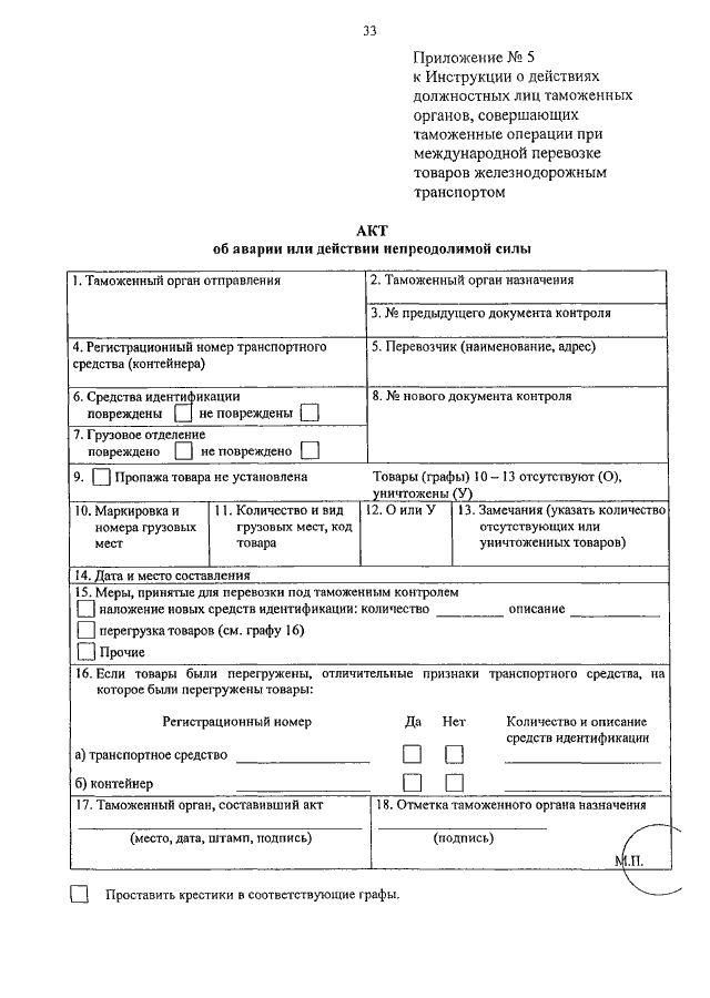 "ОБ УТВЕРЖДЕНИИ ИНСТРУКЦИИ О ДЕЙСТВИЯХ ДОЛЖНОСТНЫХ ЛИЦ ТАМОЖЕННЫХ ОРГАНОВ, СОВЕРШАЮЩИХ ТАМОЖЕННЫЕ ОПЕРАЦИИ ПРИ МЕЖДУНАРОДНОЙ ПЕРЕВОЗКЕ ТОВАРОВ ЖЕЛЕЗНОДОРОЖНЫМ ТРАНСПОРТОМ"