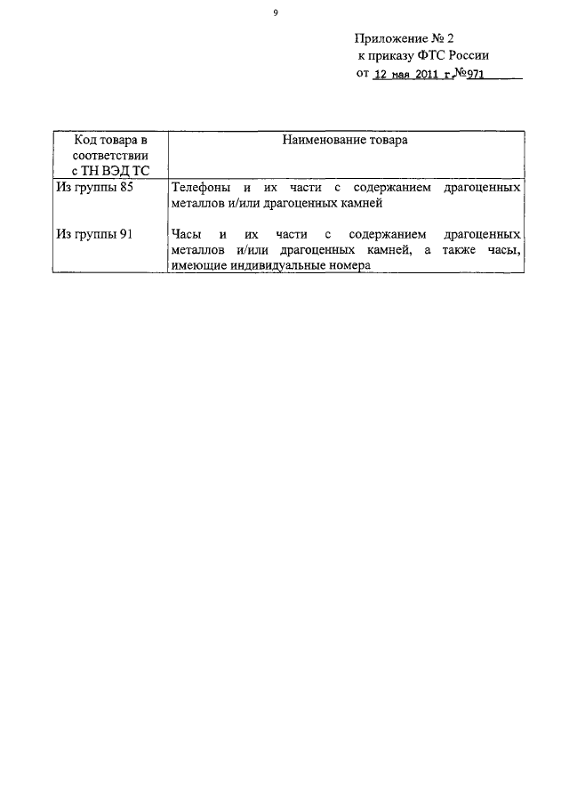 ПРИКАЗ ФТС РФ от 12.05.2011 N 971