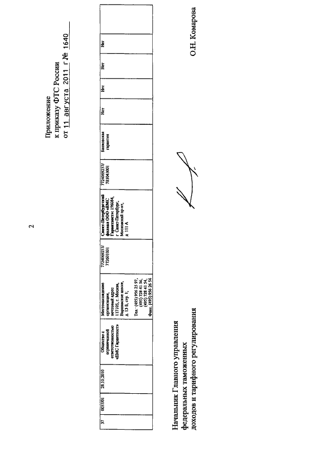 ПРИКАЗ ФТС РФ от 11.08.2011 N 1640