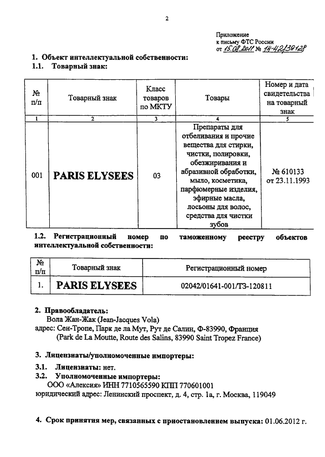 "О ТОВАРНОМ ЗНАКЕ "PARIS ELYSEES"