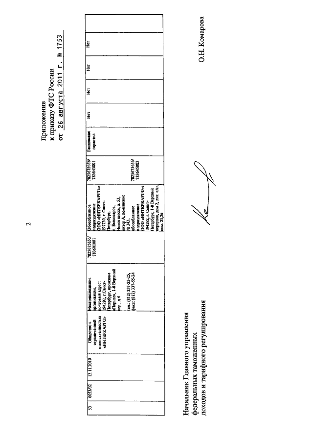ПРИКАЗ ФТС РФ от 26.08.2011 N 1753