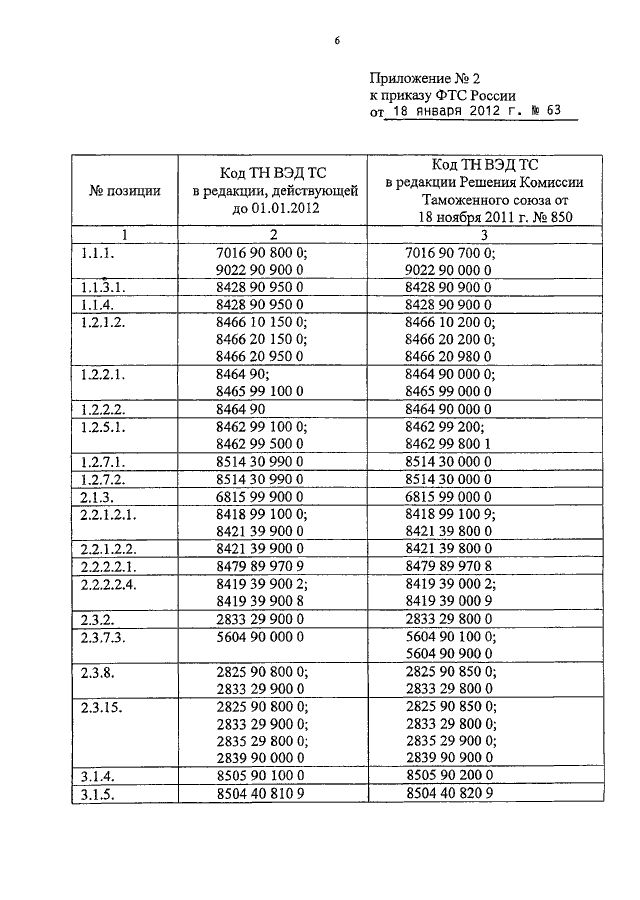 ПРИКАЗ ФТС РФ от 18.01.2012 N 63
