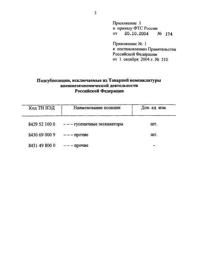 ПРИКАЗ ФТС РФ от 20.10.2004 N 174