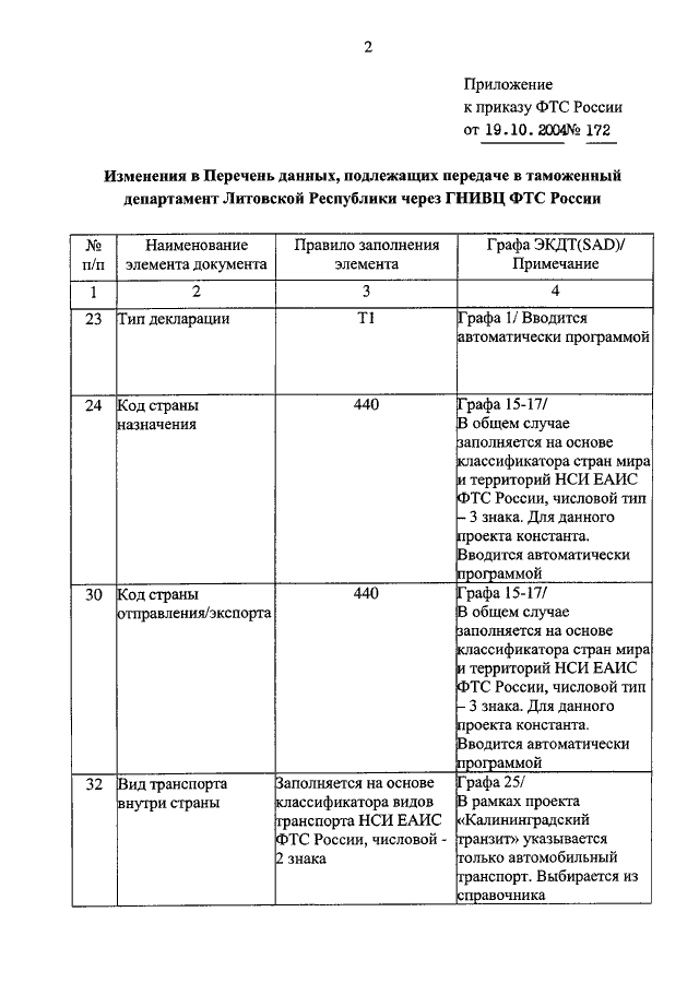 ПРИКАЗ ФТС РФ от 19.10.2004 N 172