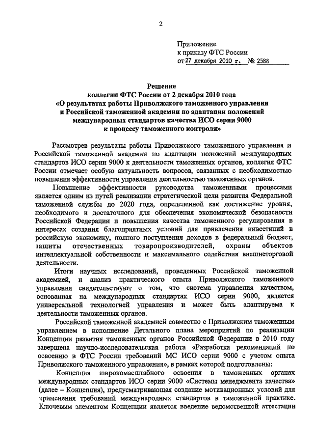 ПРИКАЗ ФТС РФ от 27.12.2010 N 2588