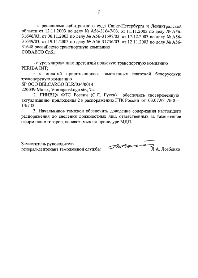 "О ВНЕСЕНИИ ИЗМЕНЕНИЙ В РАСПОРЯЖЕНИЕ ГТК РОССИИ ОТ 03.07.1998 N 01-14/742"