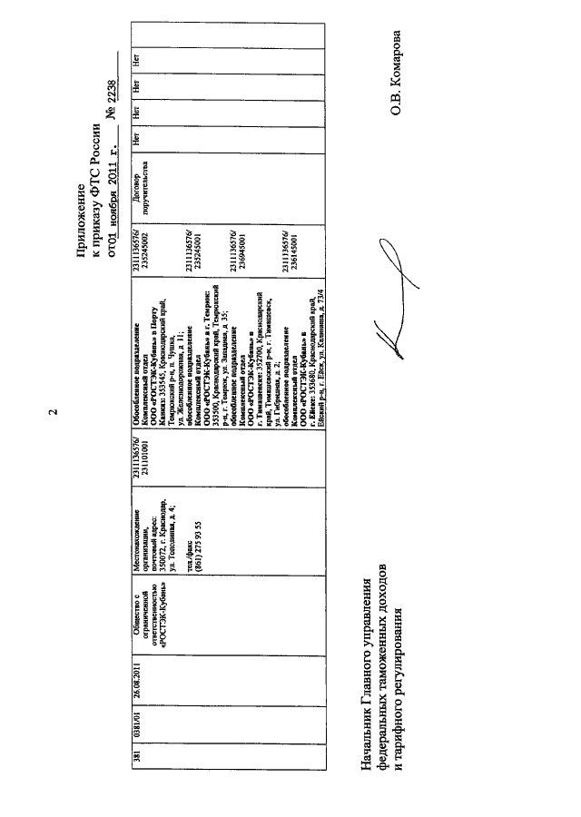 ПРИКАЗ ФТС РФ от 01.11.2011 N 2238