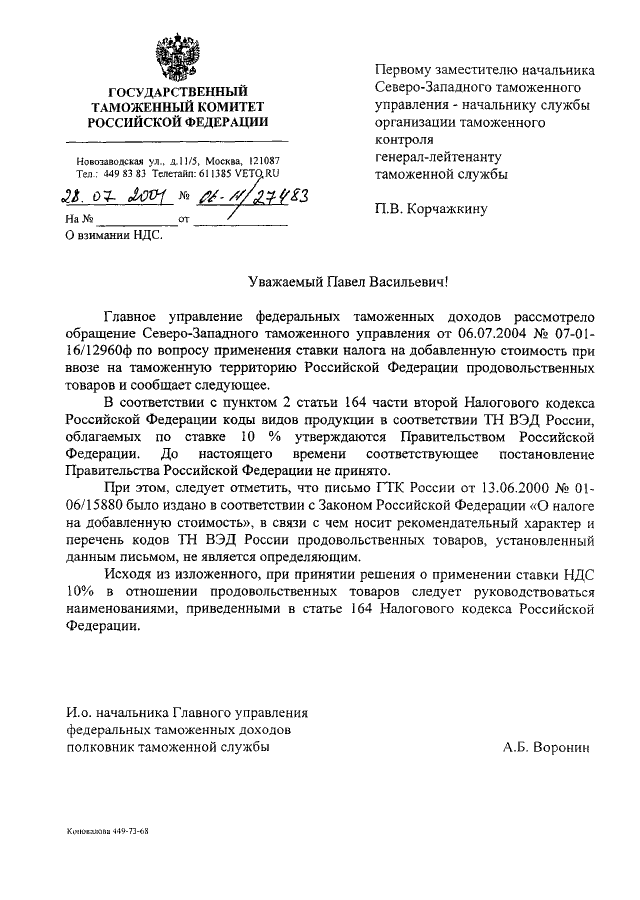 ПИСЬМО ГТК РФ от 28.07.2004 N 06-11/27483