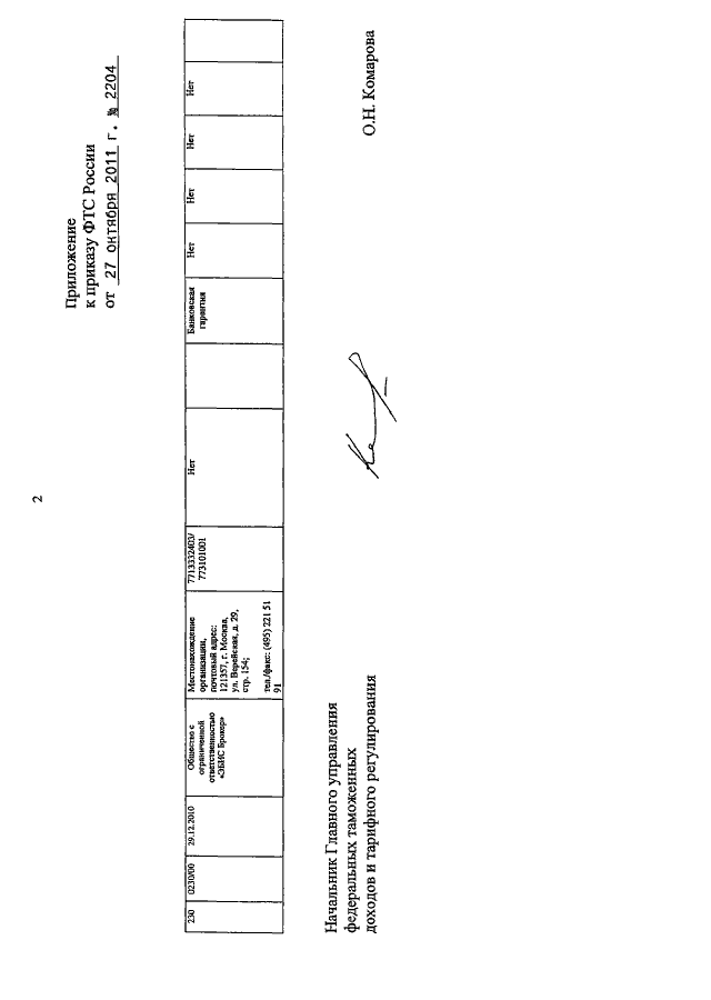 ПРИКАЗ ФТС РФ от 27.10.2011 N 2204