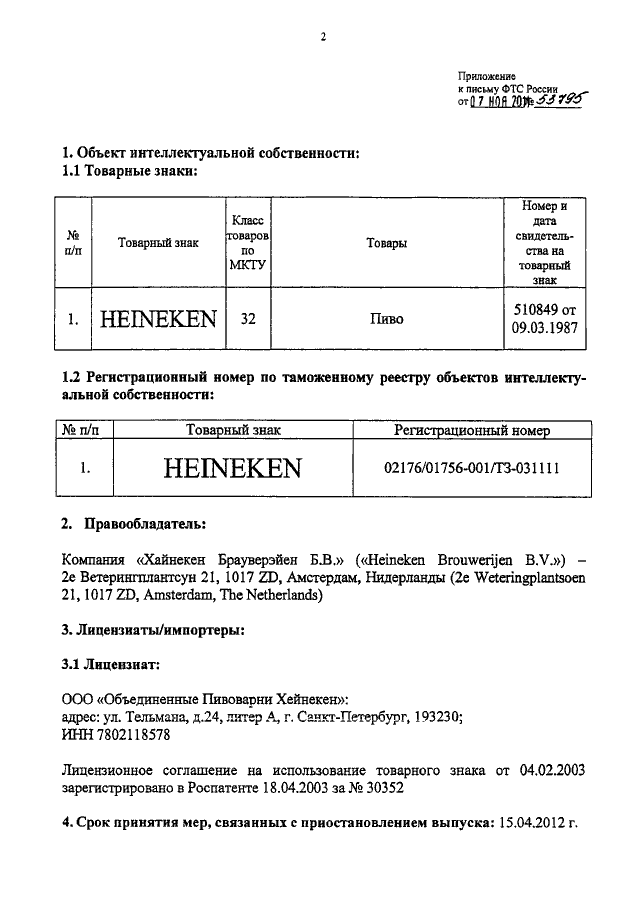 "О ТОВАРНОМ ЗНАКЕ "HEINEKEN"